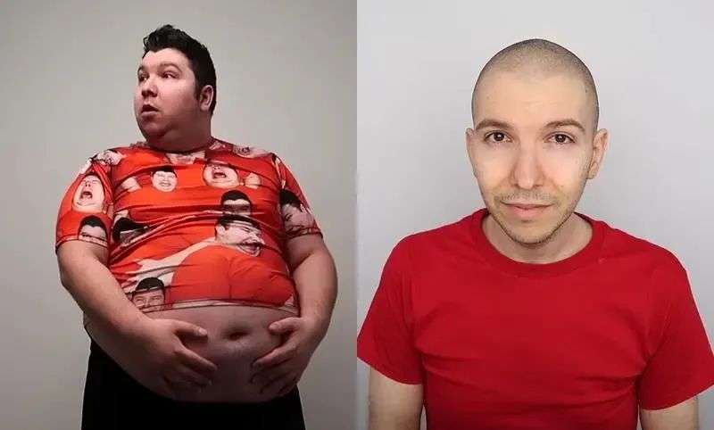 当然,也许有人会质疑,这没准儿是他减肥成功后故意制造反转的噱头来装X。