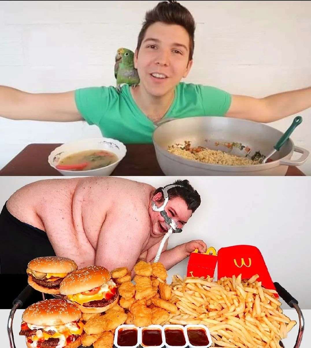 这其中“非人一般的存在”,指射的正是Nikocado Avocado,因为这哥们曾经也瘦过,后来正是在流量和算法的裹挟下,一步步把自己吃成了猪的样子。